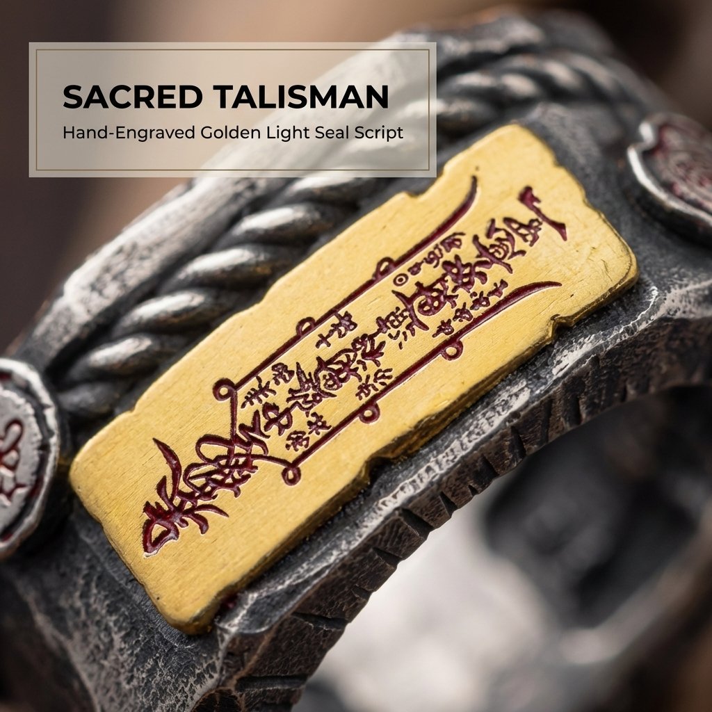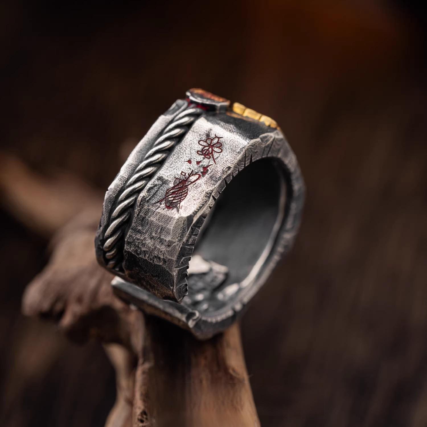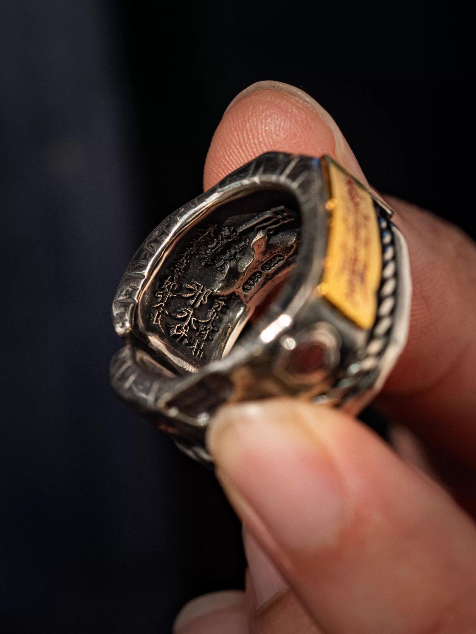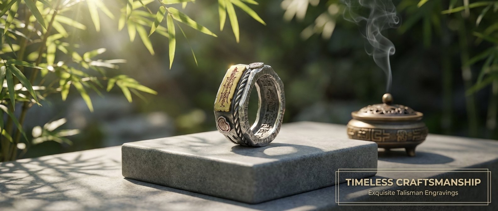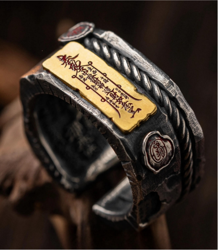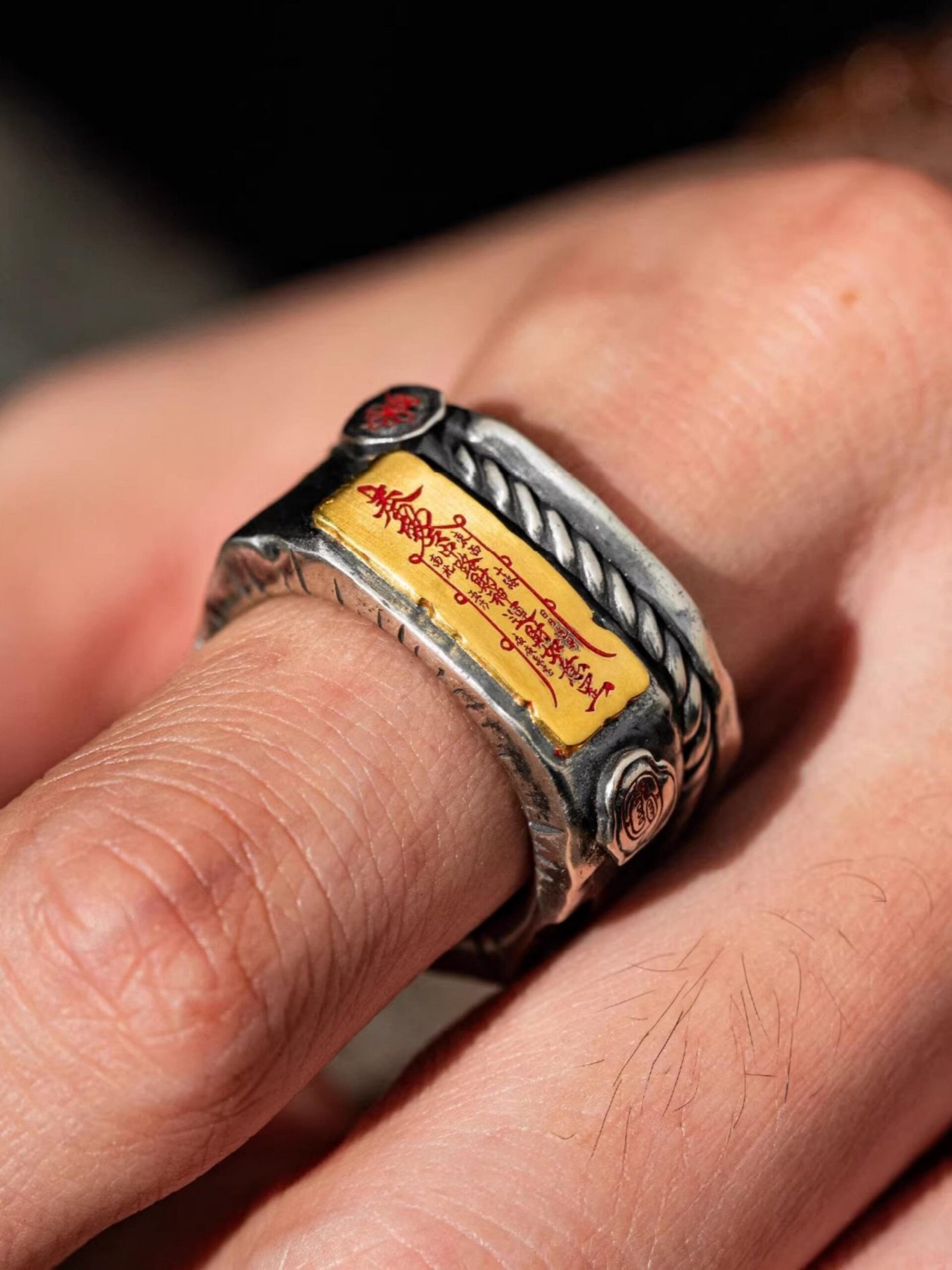 The overall shape of the ring does not feature elaborate traditional patterns. Instead, it is outlined with simple and smooth lines, which aligns with modern aesthetics. All cultural information is highly concentrated on the ring surface. Through the technique of leaving blank spaces and focusing, the vermilion talisman and the Taoist seal become the absolute visual center. This "less is more" design not only highlights the solemnity and mystery of its cultural symbols but also makes them stand out more.