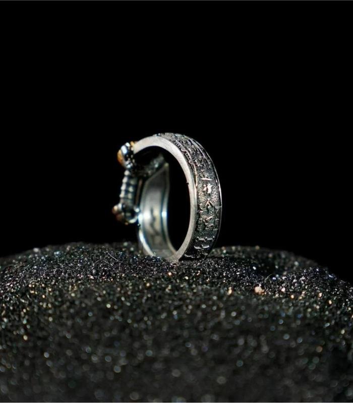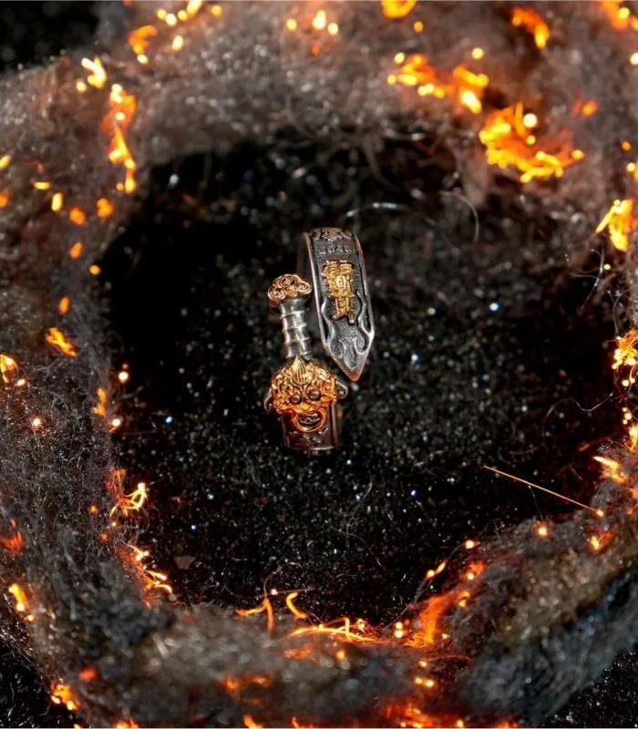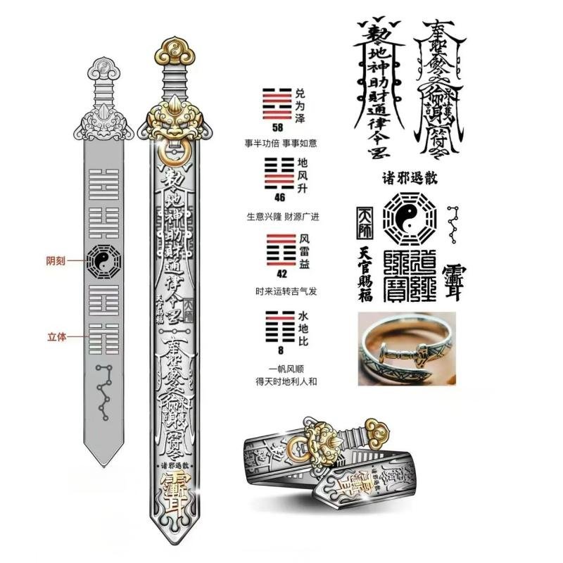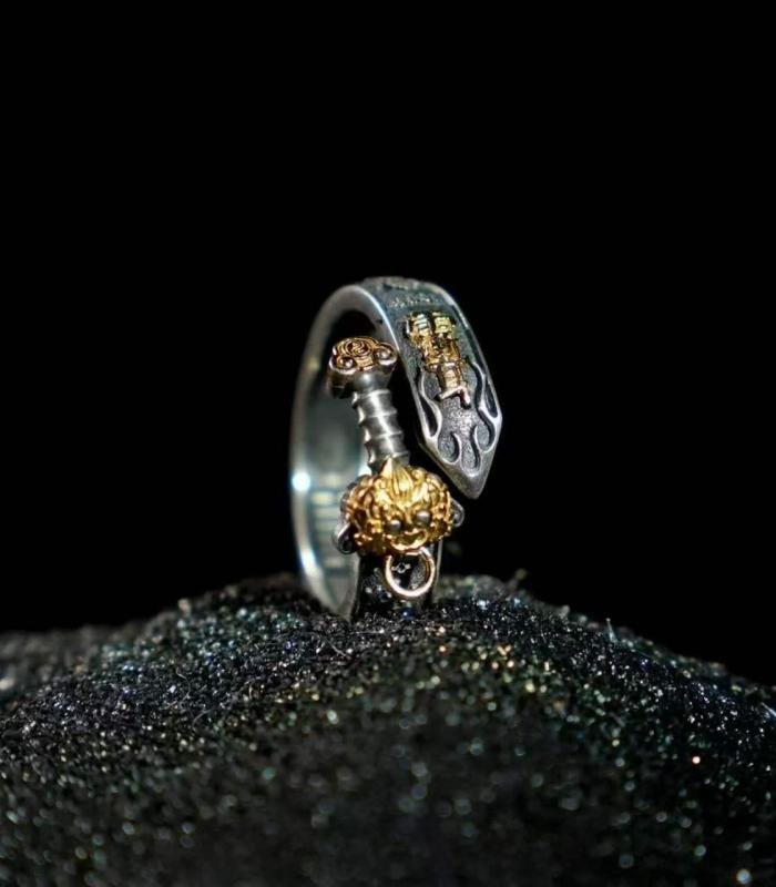 Design: The ring adopts the classic "Seven-Star Sword" shape, ingeniously integrating the sword body and handle into the ring. This design not only retains the majestic appearance of the sword but also maintains the portability of the ring. The overall lines are smooth, and the details are finely crafted, fully showcasing a sense of antiquity and mystery.