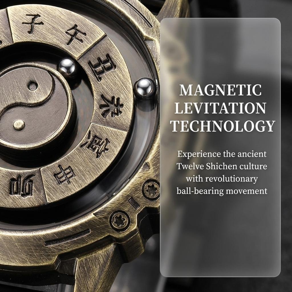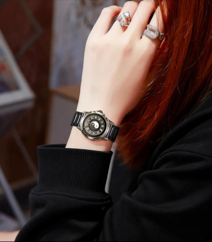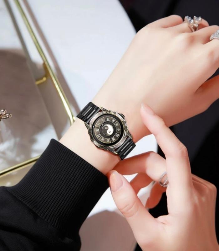 The core feature of this watch lies in its innovative magnetic levitation design. The round pointer is suspended above the dial through a precise magnetic force system and can freely rotate without the need for mechanical gears. This achieves an unprecedented sense of tranquility and beauty. On the back of the dial, a special Yin-Yang pattern is incorporated, consisting of two tiny magnetic beads. As the wrist moves, they gently rotate, as if infusing cosmic energy into it. This complex and precise magnetic levitation technology not only demonstrates the brand's technical prowess but also brings users a completely new visual experience.
