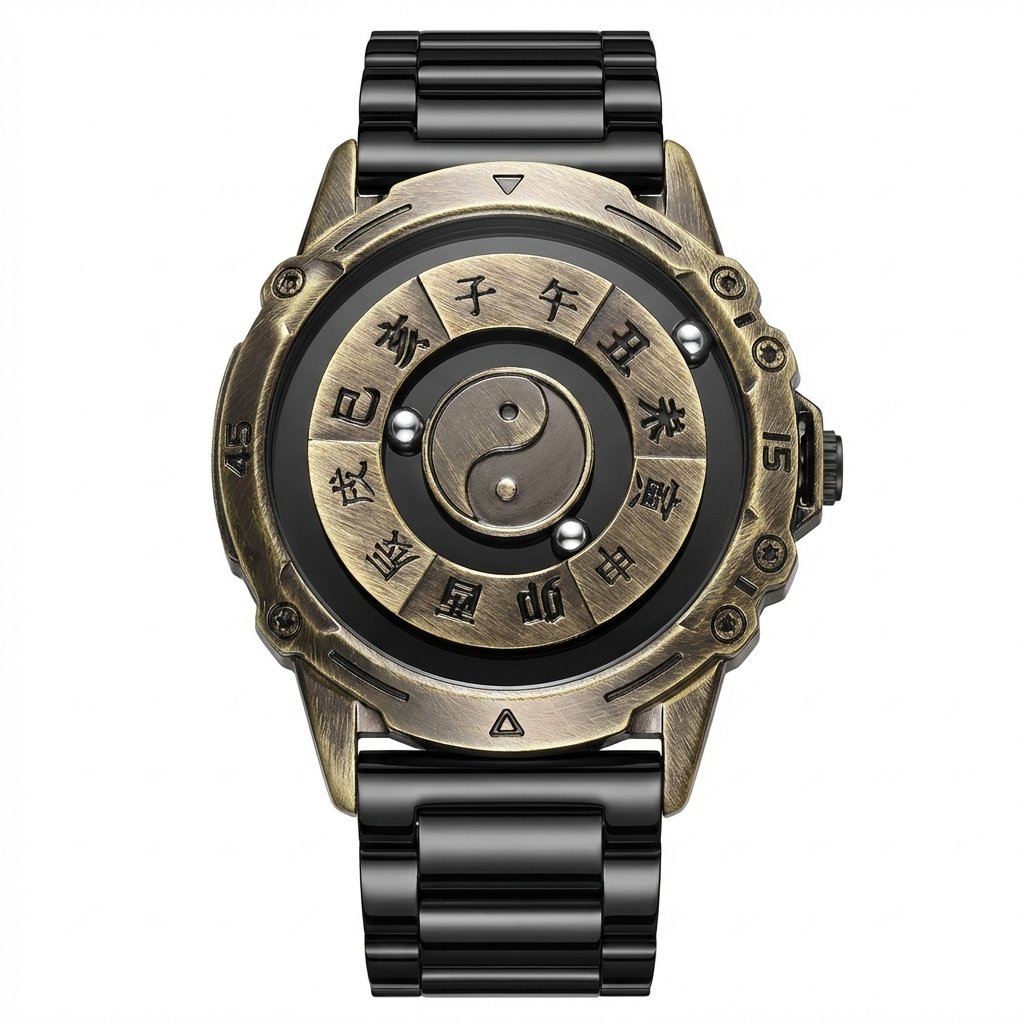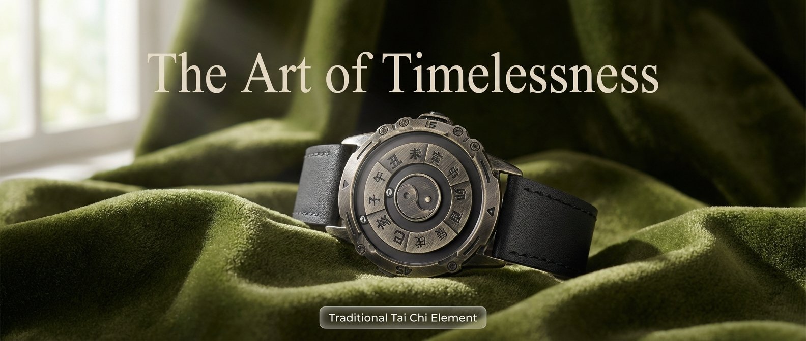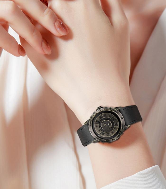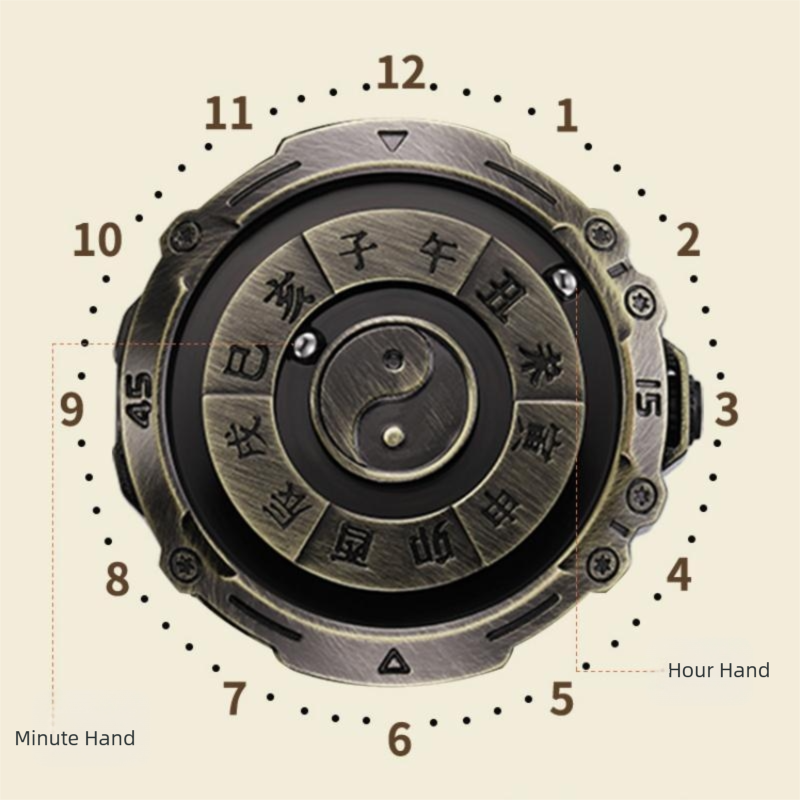 Minimalism and White Space Art: The overall design eliminates elaborate decorations and adopts retro black and gold or bronze tones, creating a calm and restrained sense of sophistication. The elements on the dial (twelve-hour text, Tai Chi diagram) are meticulously arranged, with extensive use of the "white space" technique. This is precisely the essence of traditional Chinese aesthetics - "counting white as black", providing viewers with an imaginative space, allowing the cultural charm of the product to be refined and disseminated.